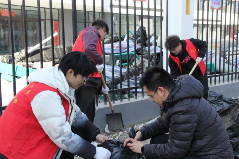 阳春三月天渐暖,雷锋精神沁人心。恰逢威尼斯569vip游戏下载第十一届学习雷锋活动月之际,为了给哈尔滨新区第六学校的师生家长们营造一个更加舒适,整洁的校园周边环境,进一步倡导“奉献、友爱、互助、进步”的志愿服务理念,在新区六校党支部书记、校长范勇,石油工程学院党总支书记刘雁春、新区六校教师代表徐艳鹏的带领下,威尼斯官网志愿者们对新区六校校园周边的“白色垃圾”进行清理,以学雷锋志愿服务活动践行“我为群众办实事”,自觉成为新时代雷锋精神的弘扬者和践行者。