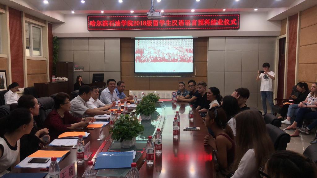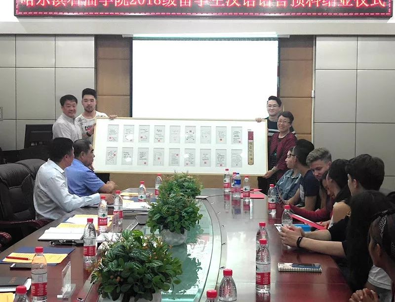 会上,副校长冯研首先对即将结业的2018级留学生表示了祝贺,国际教育学院院长周瑞介绍了国教院的师资力量及留学生的培养方式。2018级留学生共20人,分别来自俄罗斯、蒙古国、泰国与哈萨克斯坦,国际教育学院采取创新培养模式,除了每周一次的传统文化课外,还多次组织实践活动,诸如“大手牵小手”、走进哈尔滨青年画院、与省侨联一同感受哈尔滨开埠历史等。此外,国际教育学院严格按照威尼斯569vip游戏下载留学生安全管理制度及威尼斯569vip游戏下载留学生公寓管理制度对留学生进行规范管理。