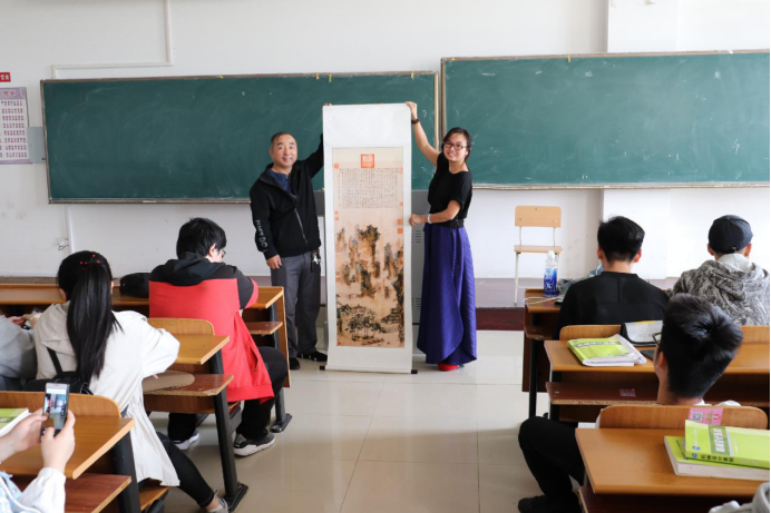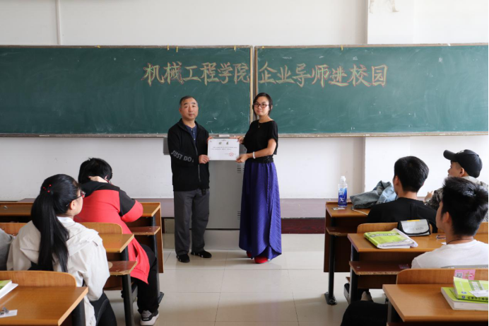 最后,机械工程学院系主任李老师代表学院聘请马经理为工业设计企业导师,并颁发聘书。马经理也向我赠送了一幅宋朝时期的名画。